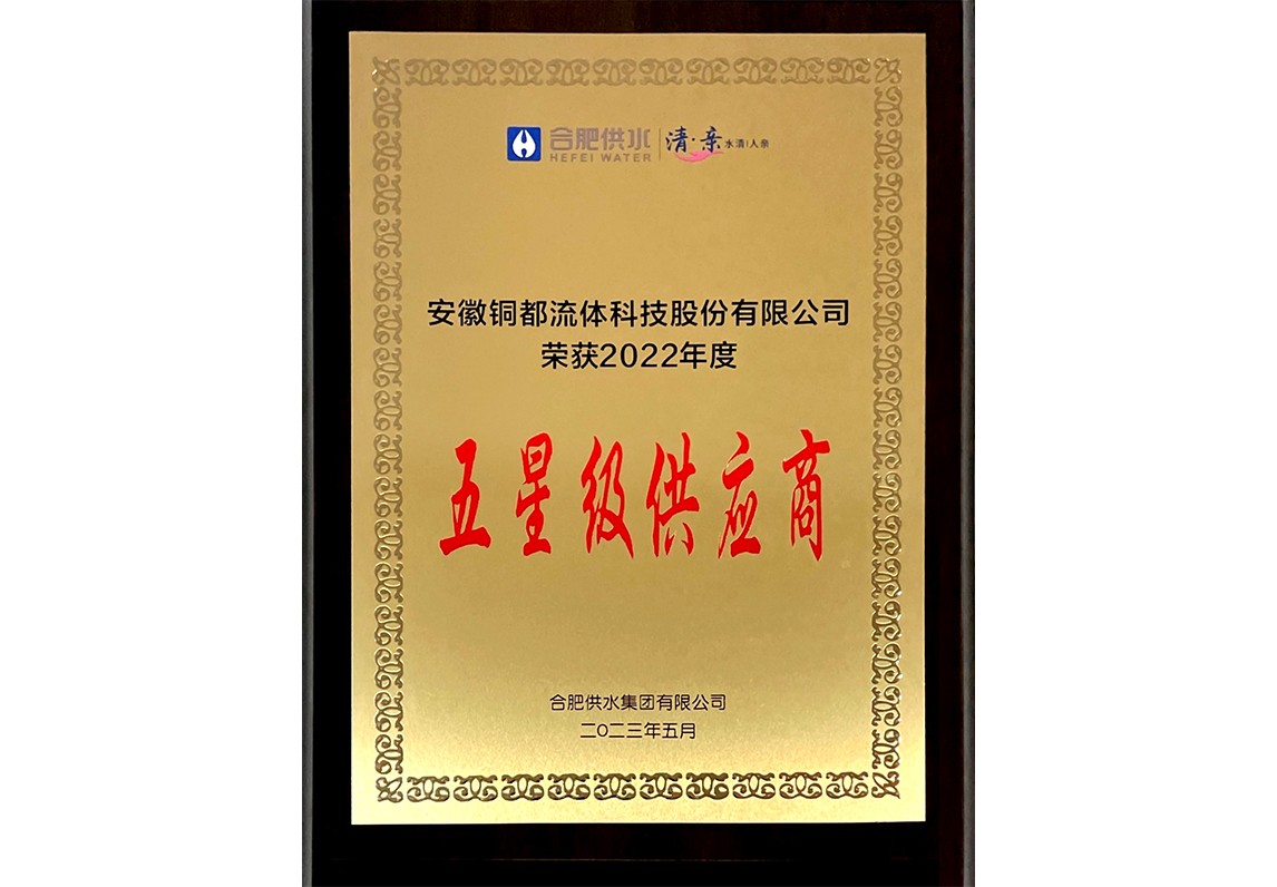 銅都流體2022年度合肥供水五星級供應商