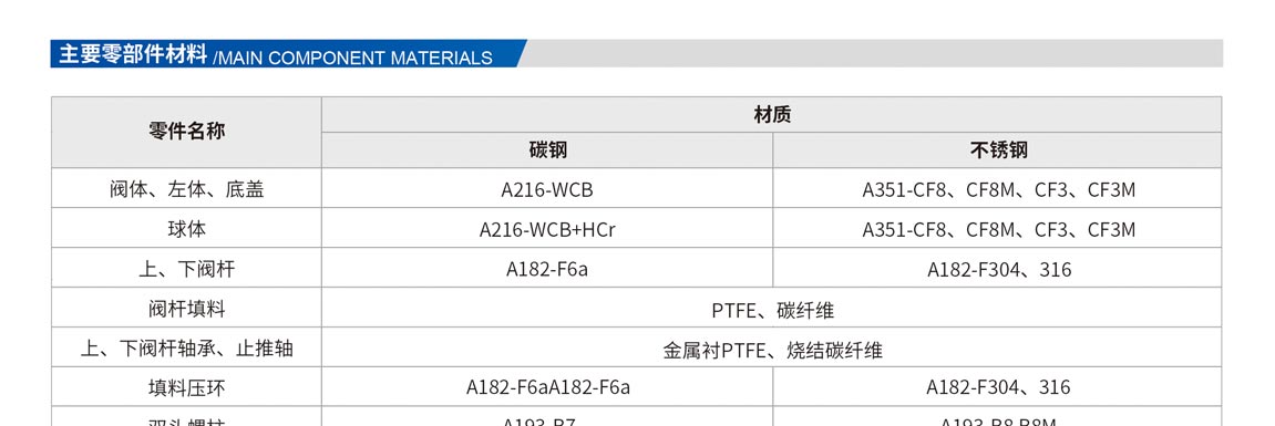 固定球閥有二片式和三片式兩種閥體結(jié)構(gòu),中法蘭用螺栓連接,密封采用增強PTFE鑲?cè)氩讳P鋼圈內(nèi),鋼圈后部沒有彈簧閥座緊貼球體,保持密封。上下閥桿均設有PTFE軸承,減少磨擦,操作省力。