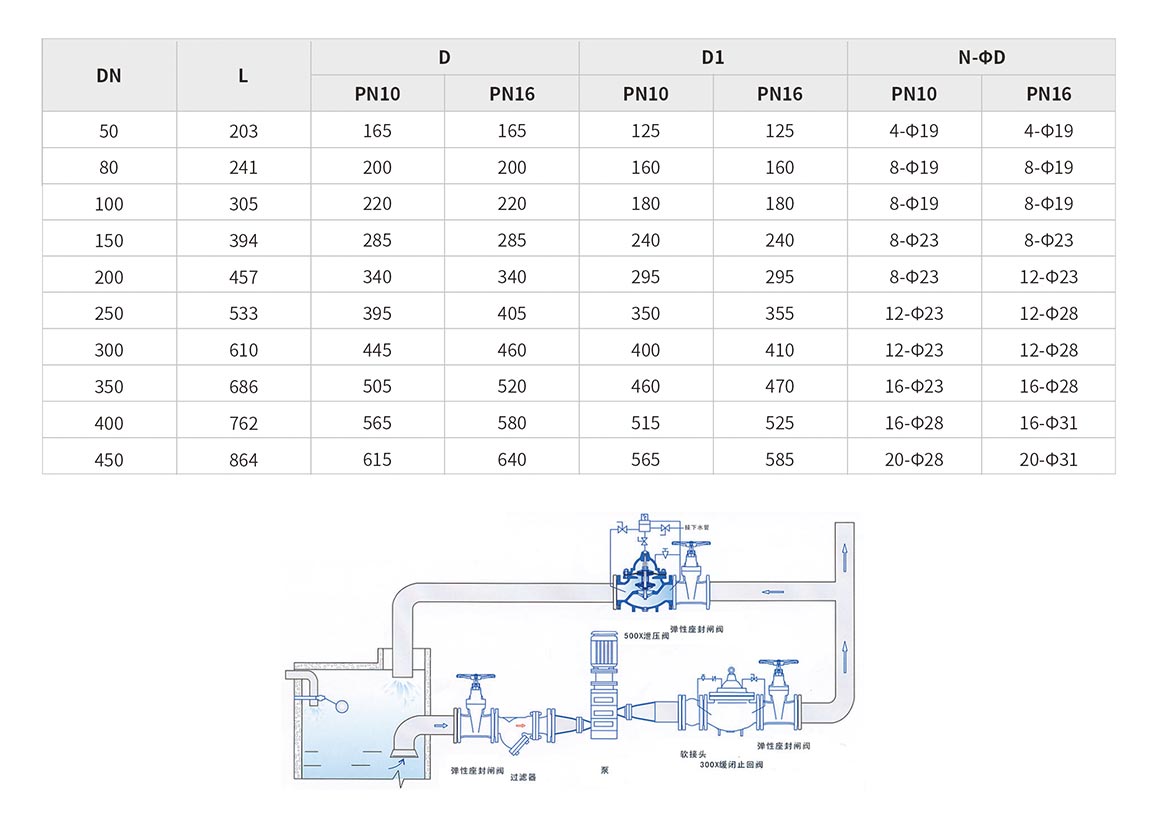 500X泄壓/持壓閥主要用于消防或其他供水系統(tǒng)中,以防止系統(tǒng)超壓或維持消防供水系統(tǒng)的壓力。消防泵關閉后還可以減小水錘的沖擊。也用于大型供水系統(tǒng)的水錘消除裝置,并且閥門控制系統(tǒng)的進口處裝有一個自清潔濾網,利用流體特性,使比重較大、直徑較大的懸浮顆粒不會進入控制系統(tǒng),確保系統(tǒng)循環(huán)暢通無阻,使閥門能安全可靠地運行。系統(tǒng)動作平穩(wěn)、強度高、使用壽命長適用于DN600口徑以下的管道。