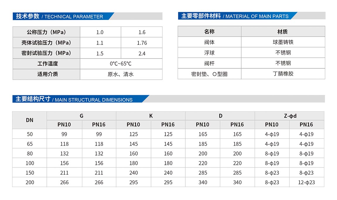 5、浮球、閥桿采用不銹鋼制成,強(qiáng)度高,耐磨耐腐蝕性強(qiáng),使用壽命長。